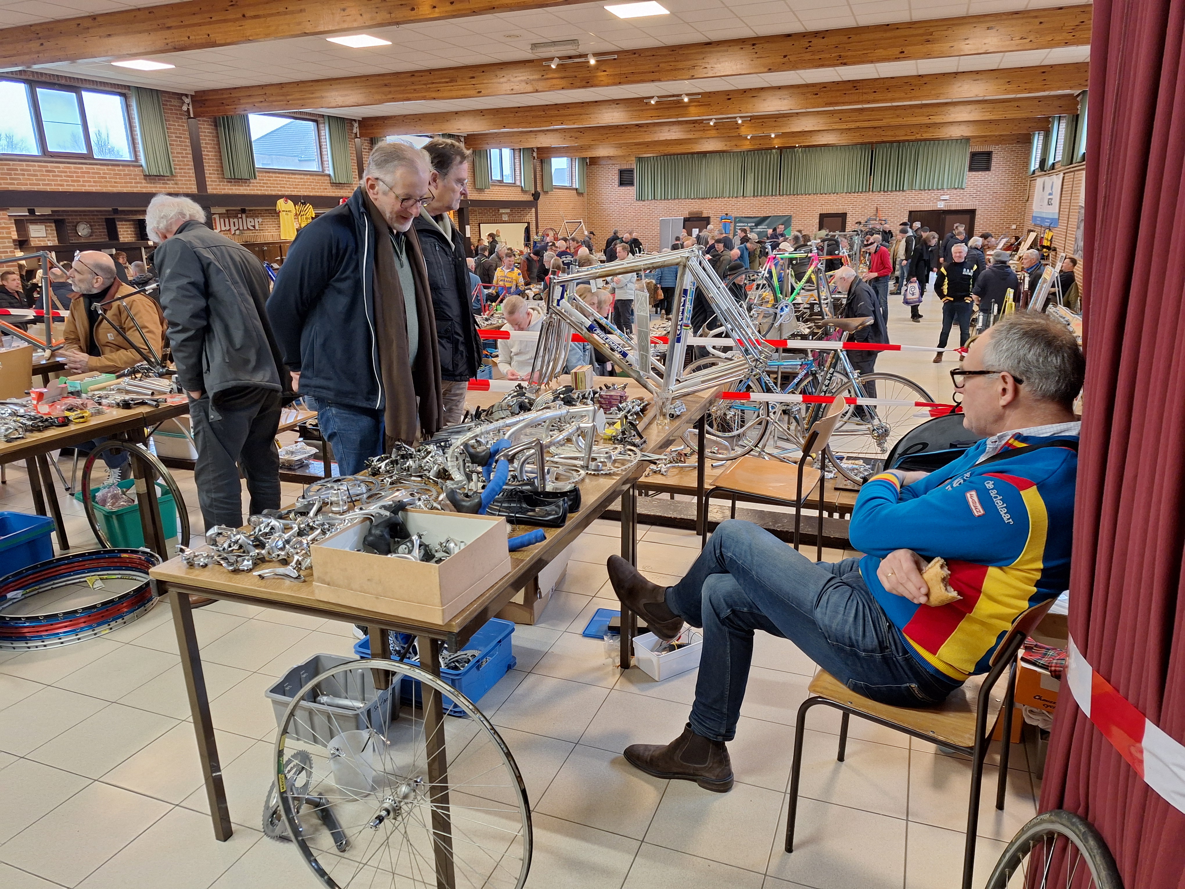 Here we go! Next Sunday, January 18, the thirteenth edition of the Retrofietsbeurs Dessel! Fifty exhibitors from Flanders, Wallonia, the Netherlands, England, France, and Germany will display and sell a wide variety of everything related to retro cycling. All halls in the parish center are filled with parts, wheels, complete bicycles, photos, books, memorabilia…